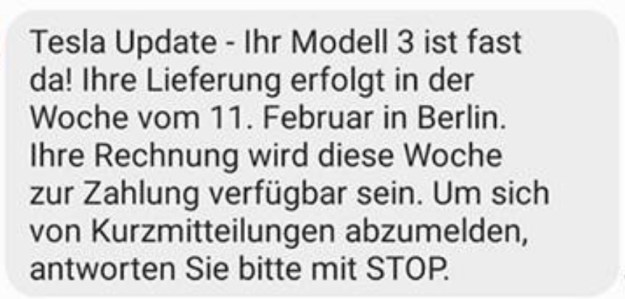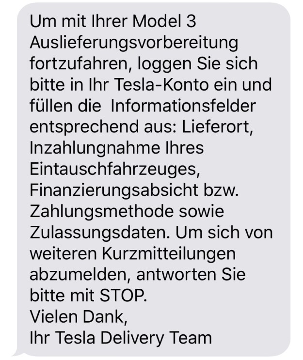 Kurz davor erfolgt mit einer SMS die Aufforderung, Daten zur Auslieferung online einzugeben: